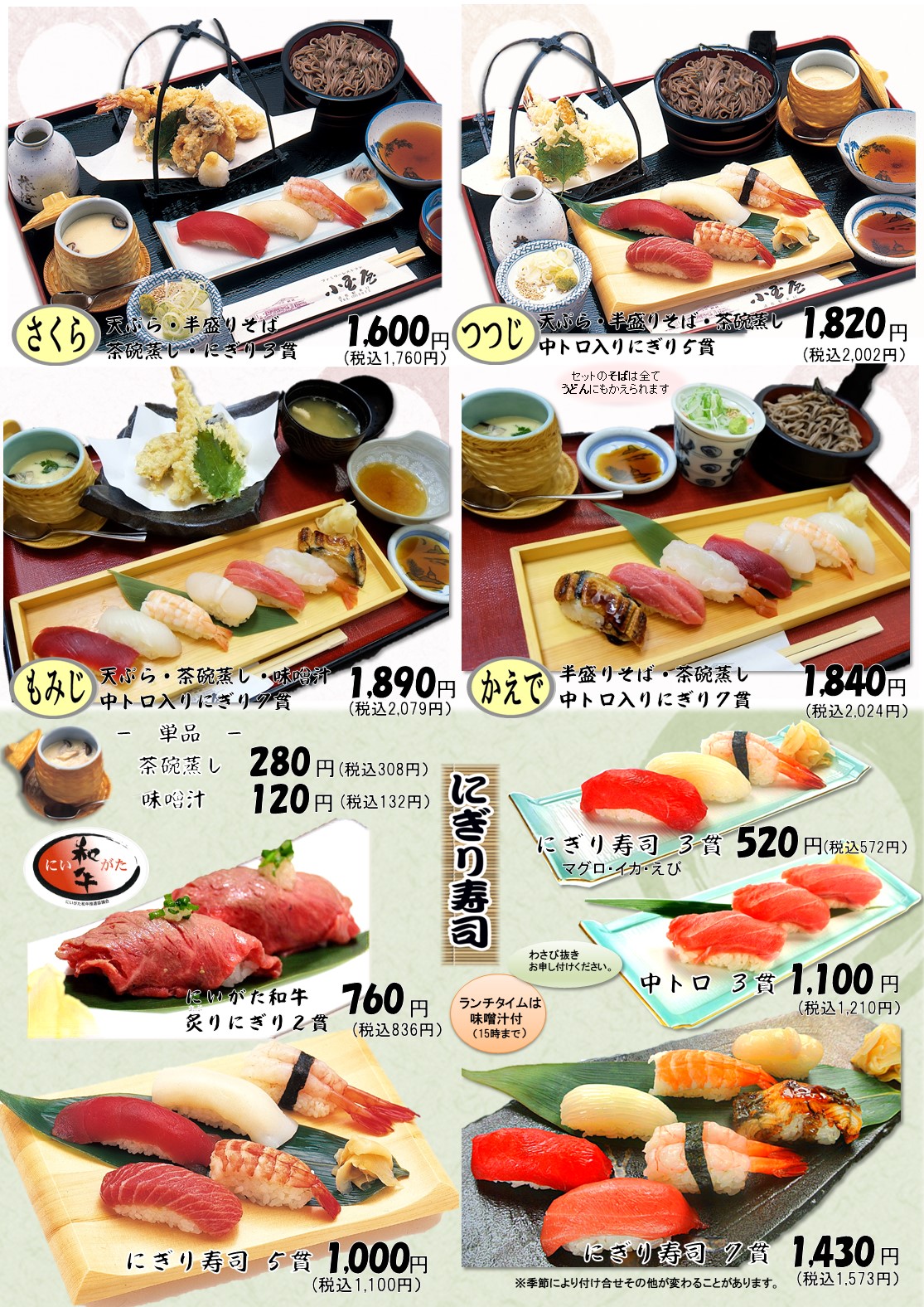 魚沼産コシヒカリ・日本海の幸・お鮨・そば・地酒・ステーキから洋食と幅広いメニュー。接待・ビジネス・ご家族で!